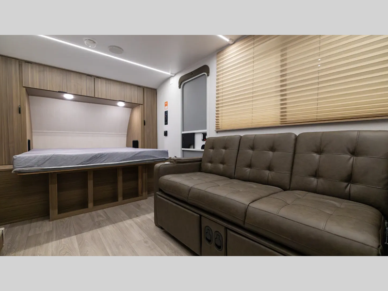 Sleeps 8 Slides 1 Length 22 ft 11 in Ext Width 7 ft 6 in Ext Height 10 ft 4 in Hitch Weight 545 lbs Dry Weight 4194 lbs Cargo Capacity 1451 lbs Fresh Water Capacity 39 gals Grey Water Capacity 30 gals Black Water Capacity 30 gals Furnace BTU 20000 btu Number Of Bunks 2 Available Beds Murphy Refrigerator Type 12V Refrigerator Size 11 cu ft Cooktop Burners 2 Shower Size 36" x 24" Number of Awnings 1 Water Heater Type On Demand AC BTU 13500 btu Awning Info 14' Power with adjustable legs and LED lights Axle Count 1 Shower Type Standard Electrical Service 30 amp Similar Floorplans